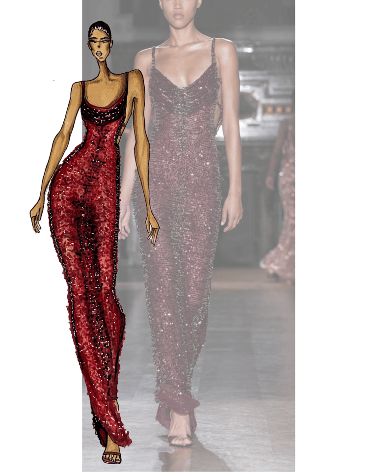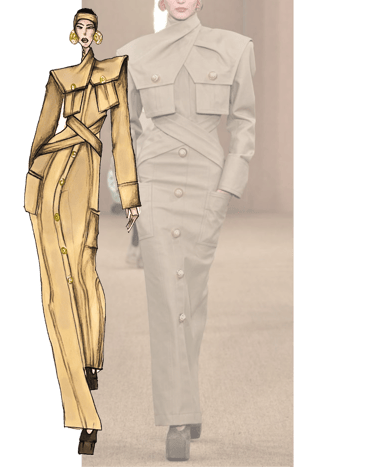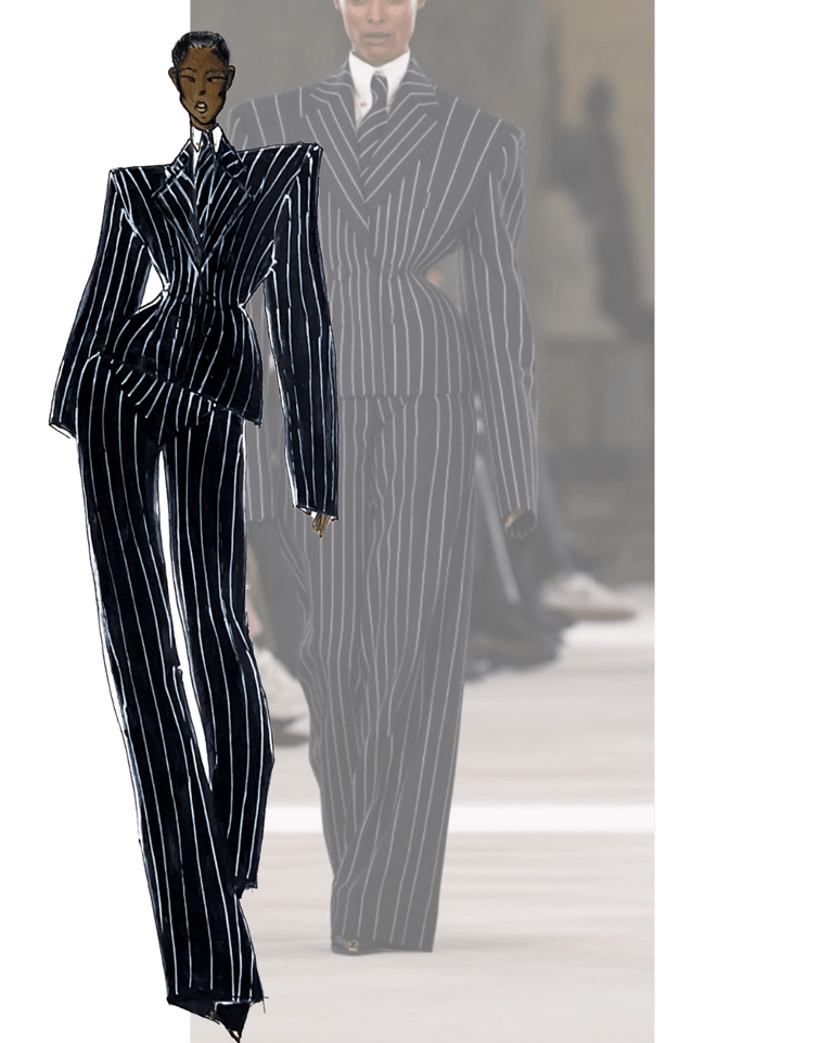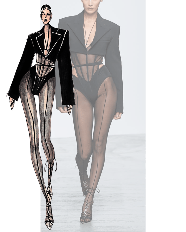 Drawing full looks of designer fashion shows, namely Mugler, Balmain, etc.